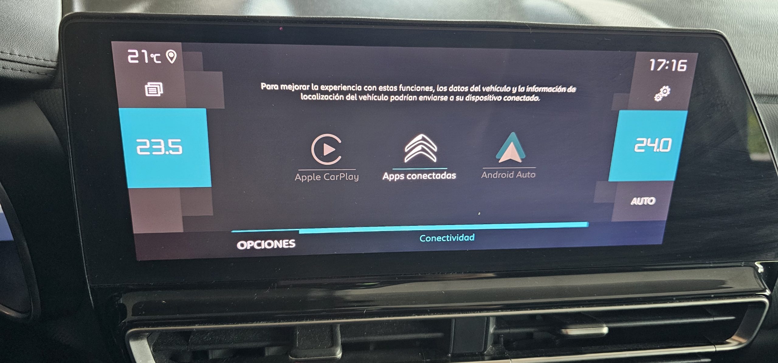 Sistema de ventilación con pantalla digital y filtro de pólen controles en pantalla táctil